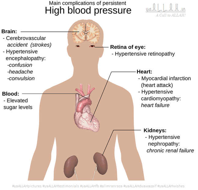 Main complications of Persistent High Blood Pressure in Human Body.